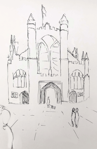 I needed to increase the amount of sketching of real landscapes/public scenes and buildings, so I went into Bath and set a timer for each sketch. Just using a cheap gel pen and paper moved around the city drawing a few scenes and buildings, until my hands got too cold! Here's a few of them...